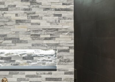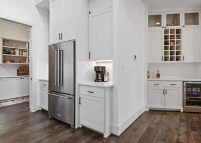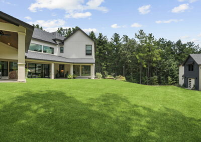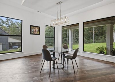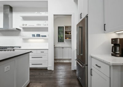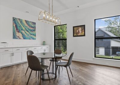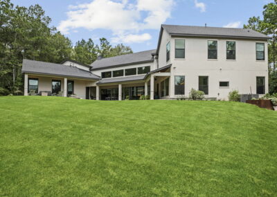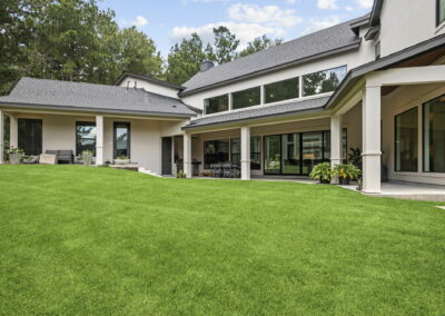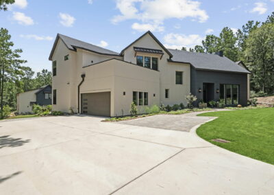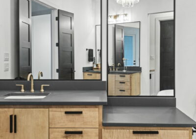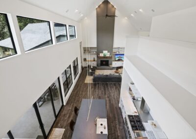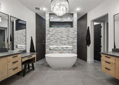 This new home in Crown Ranch features a clean, modern European design. We used two-tone stucco and added large windows for natural light. The vaulted great room includes a sleek gas fireplace. The kitchen stands out with quartz counters and a bold center island. Each bathroom has a spa-like feel with walk-in showers and freestanding tubs that combine comfort and style.
