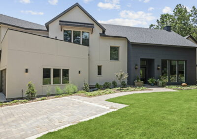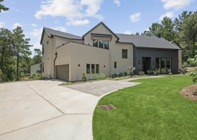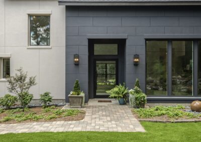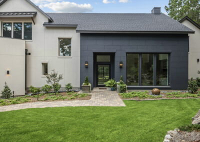 Two-tone stucco and fiber cement panels with clean, modern lines