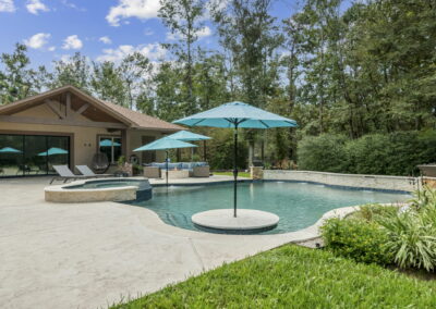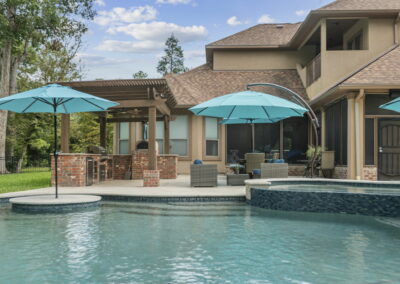 Freeform Pool, Outdoor Kitchen, and Pool House in Benders Landing Estates of Spring, Texas