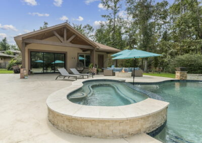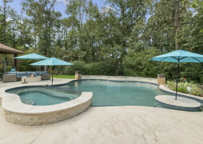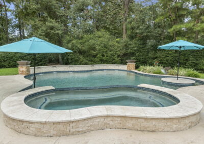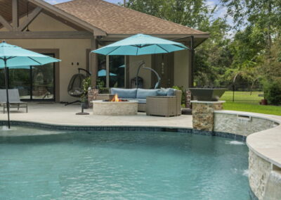 Tanning ledge, built-in spa, smooth waterfall features, and spots for umbrellas
