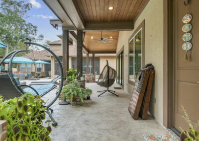Different lounge spots around the pool and patio