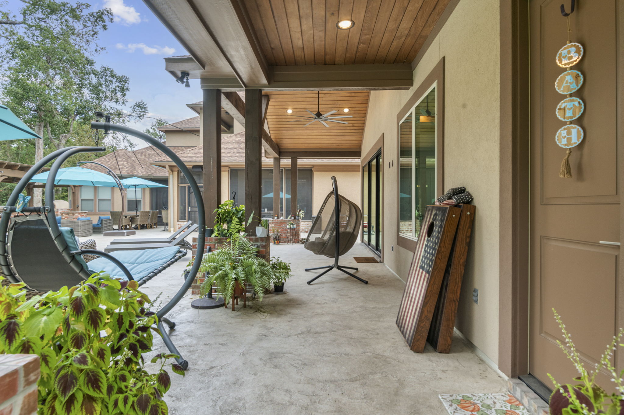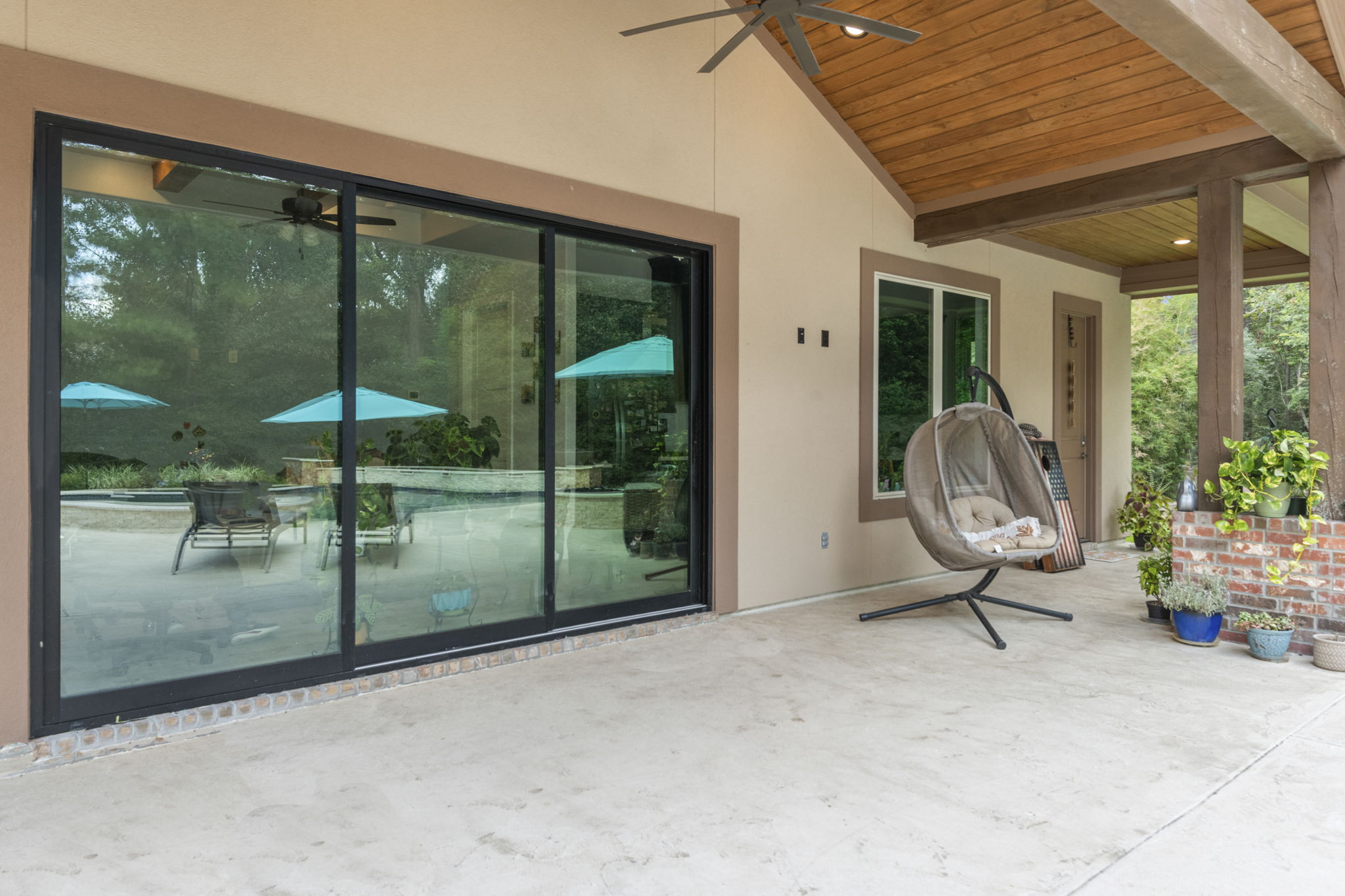 Different lounge spots around the pool and patio