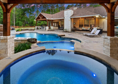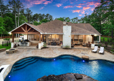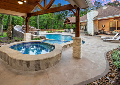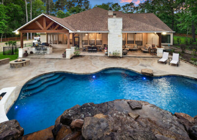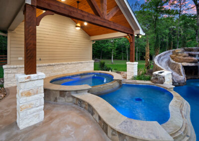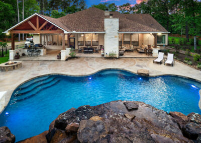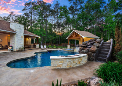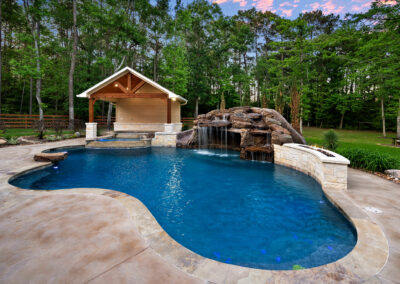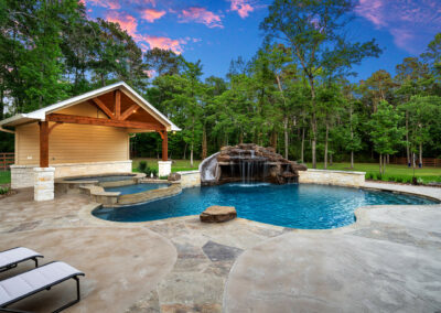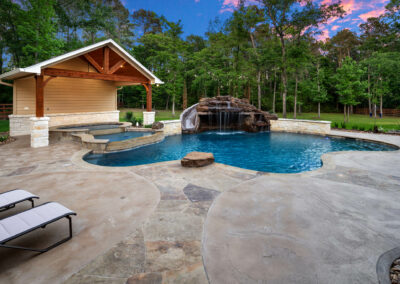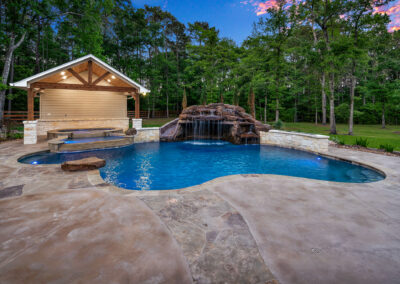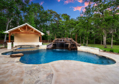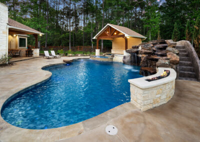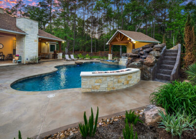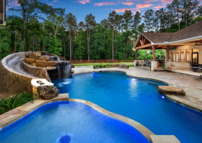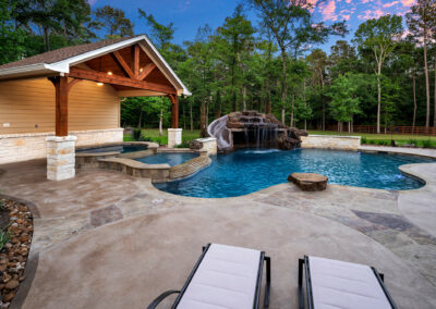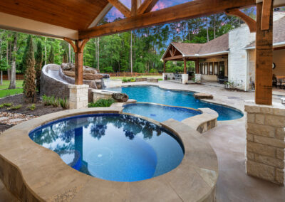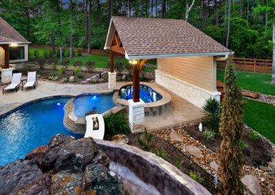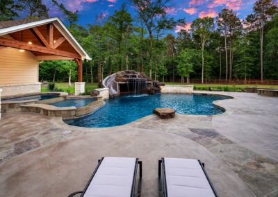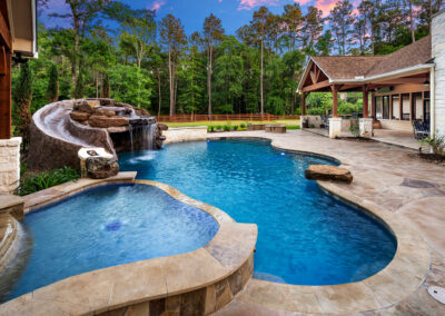 Freeform Pool, Slide, and Grotto in Lake Windcrest of Tomball, Texas
