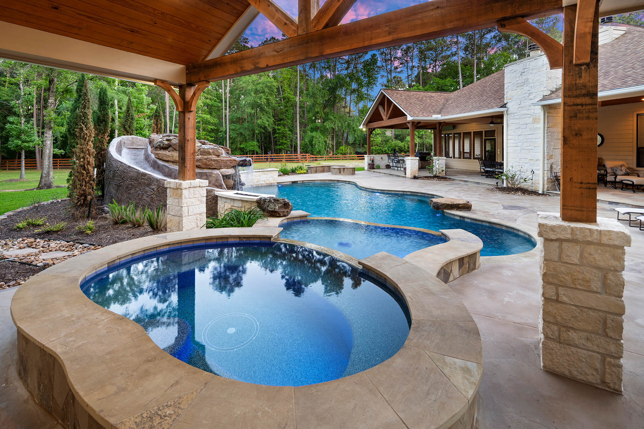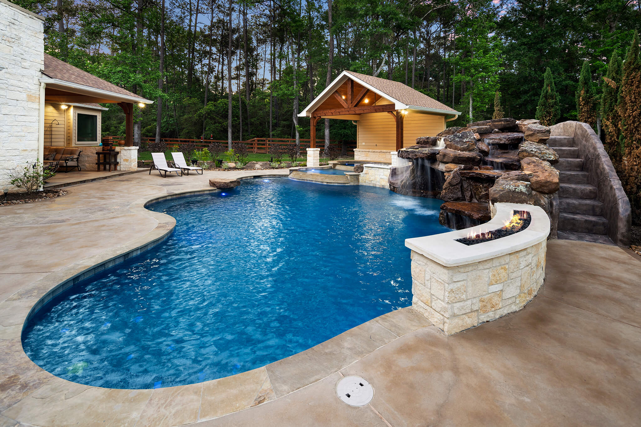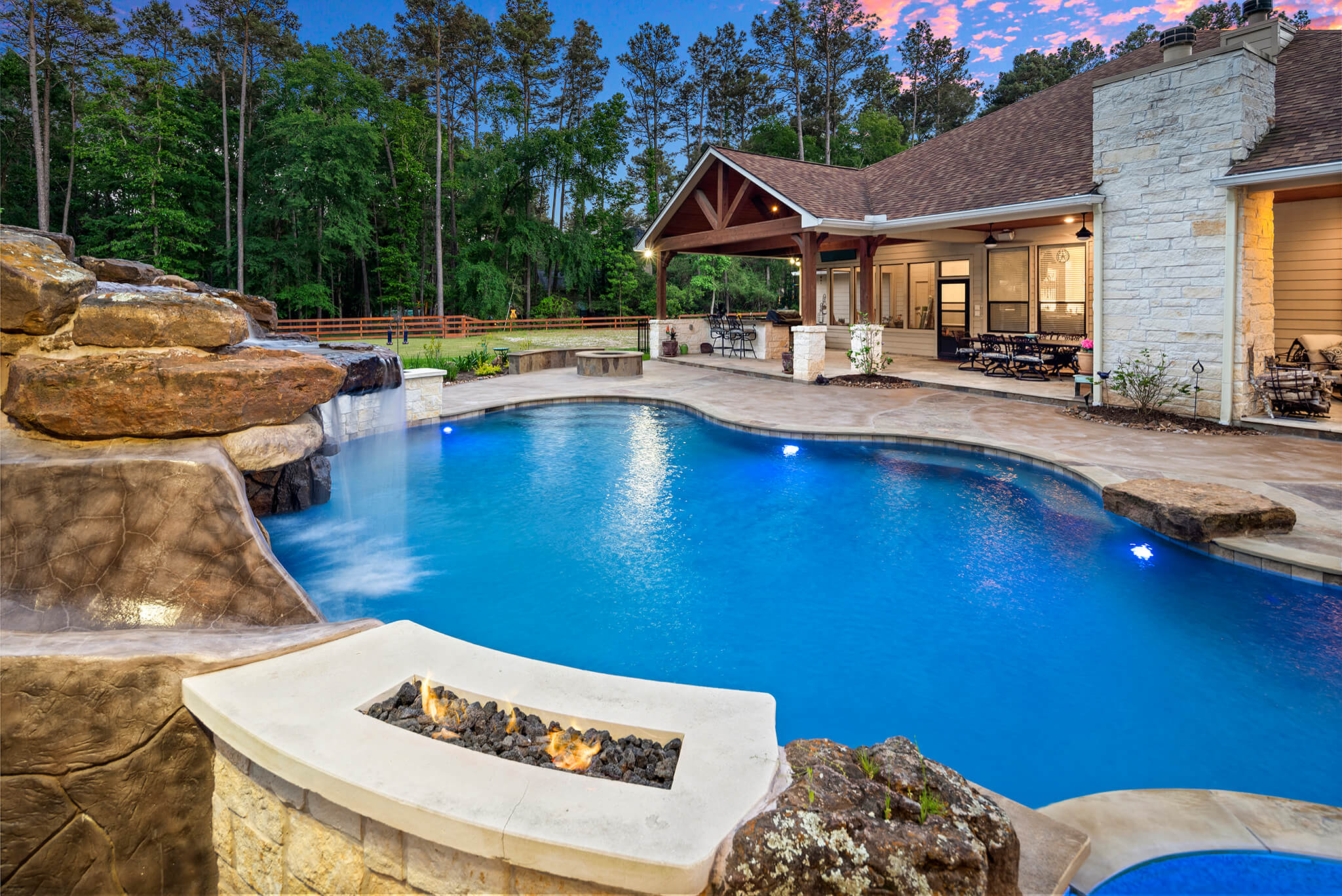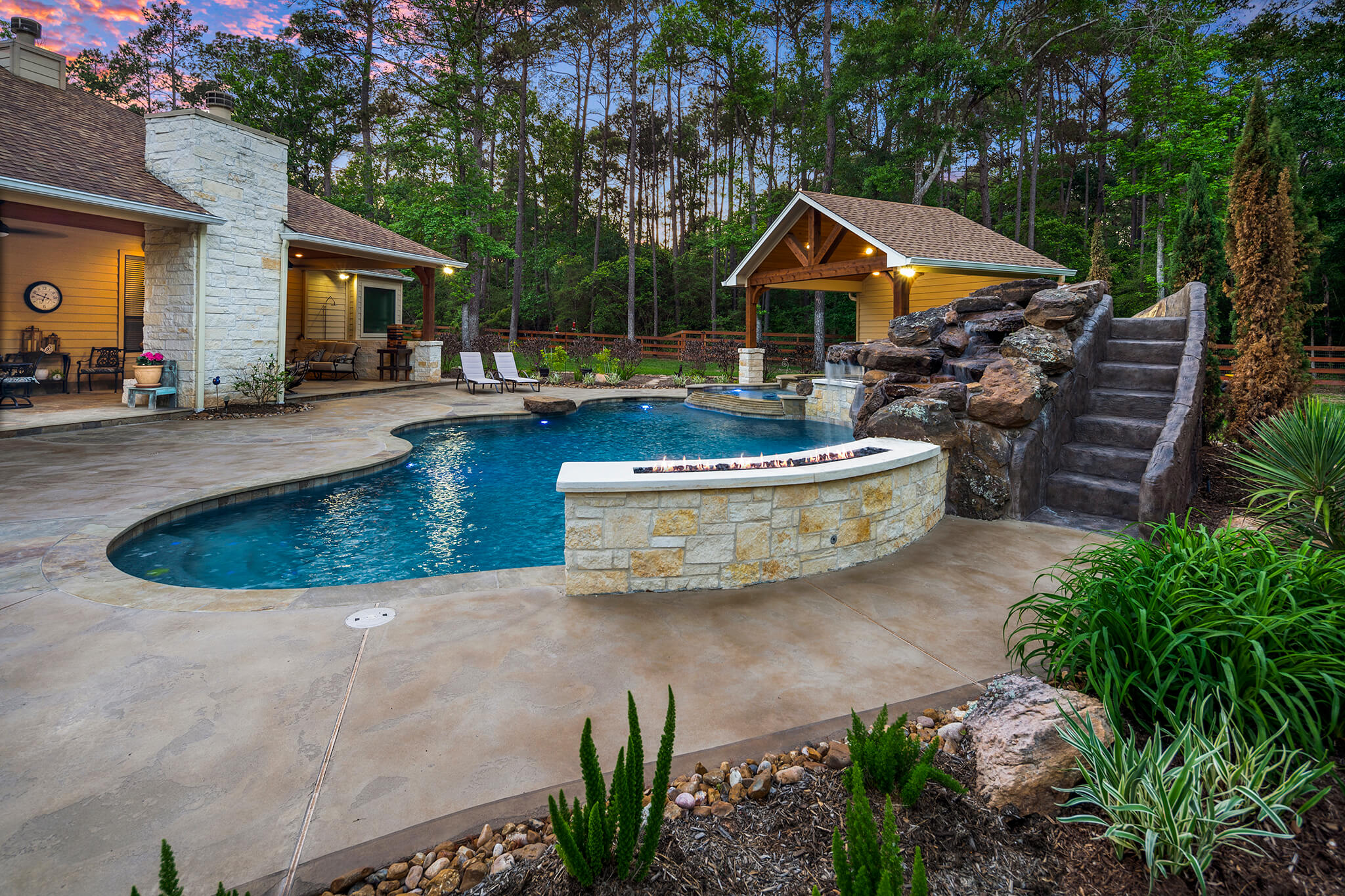 Freeform Pool, Slide, and Grotto in Lake Windcrest of Tomball, Texas