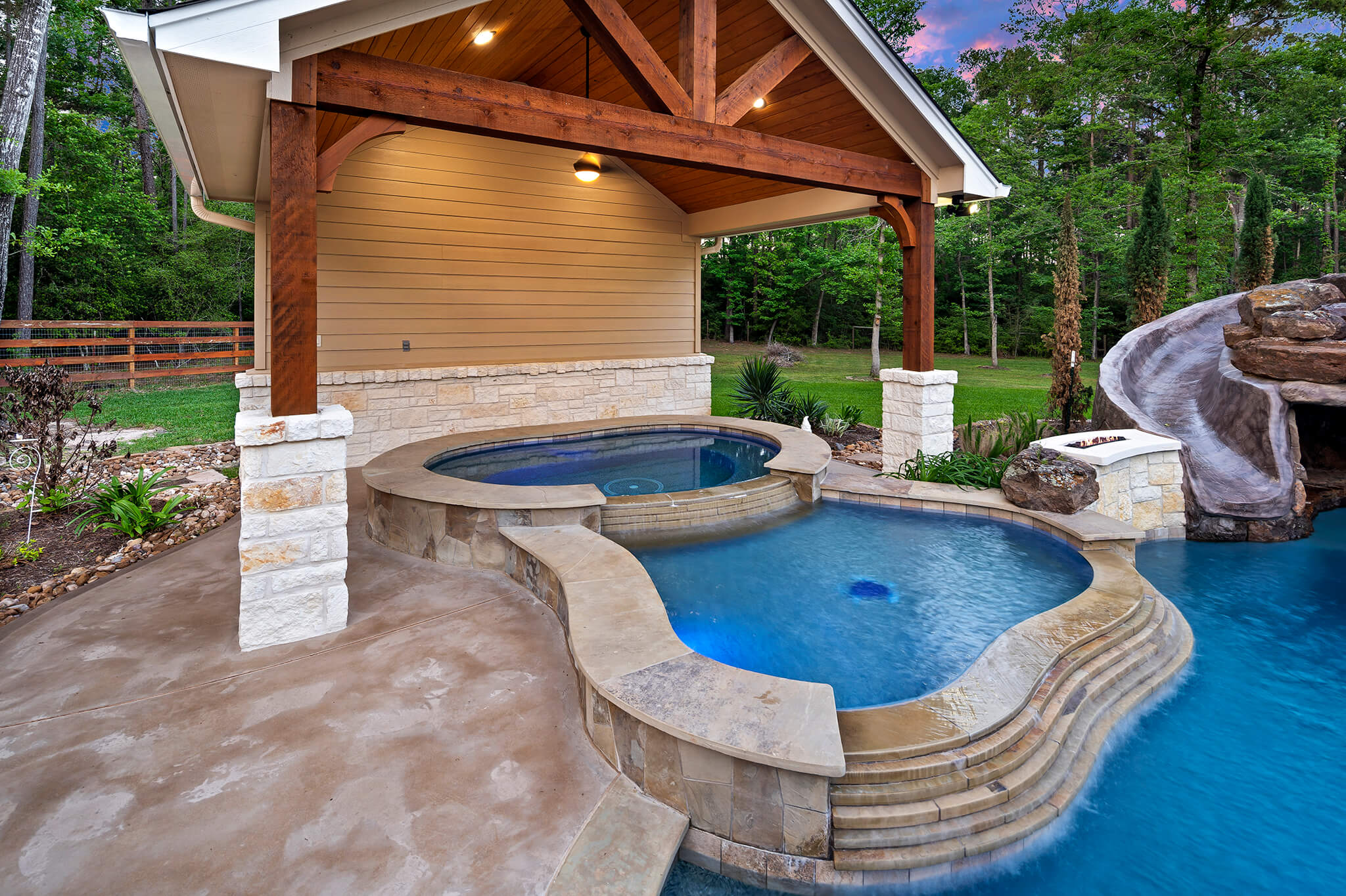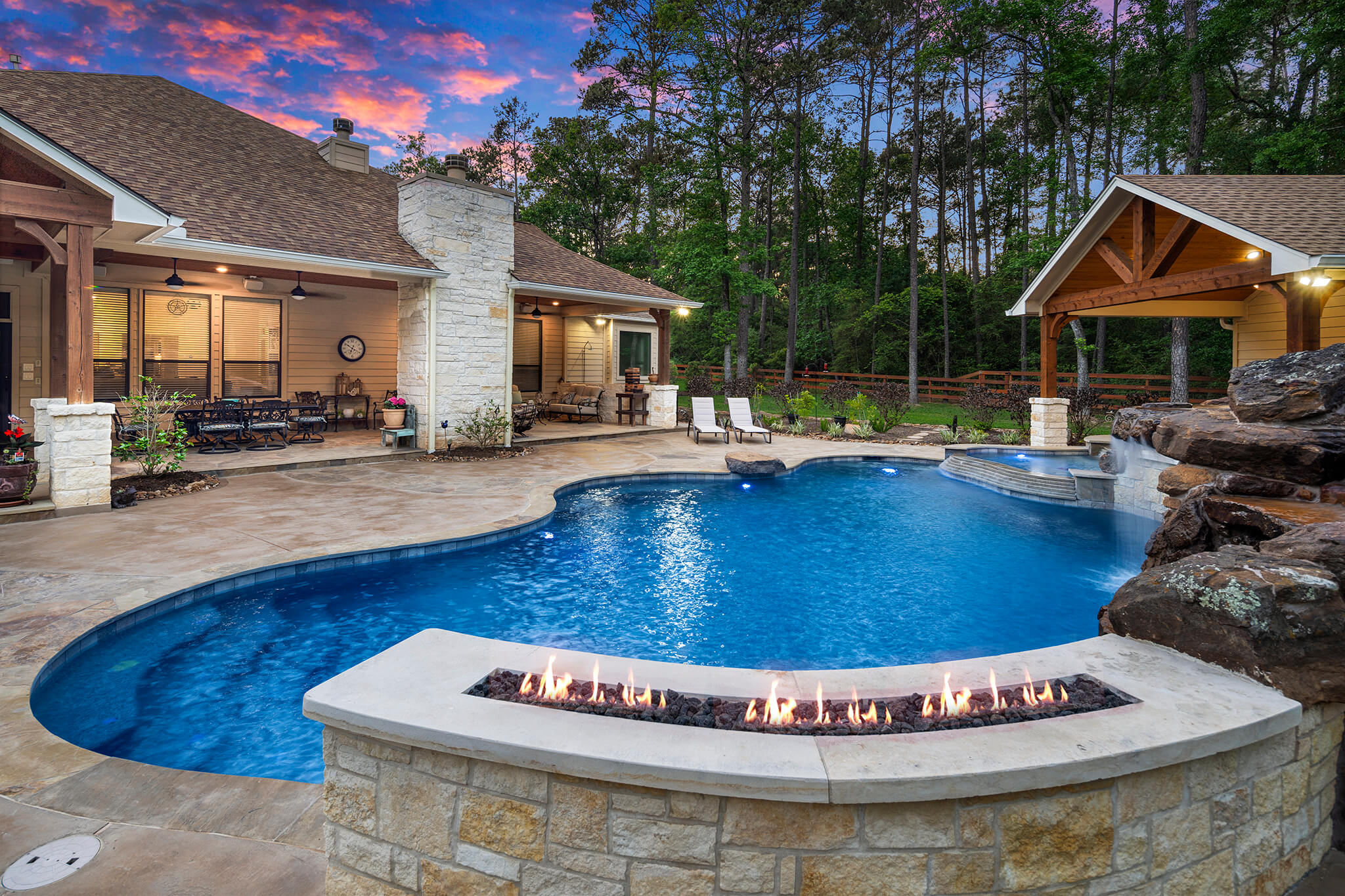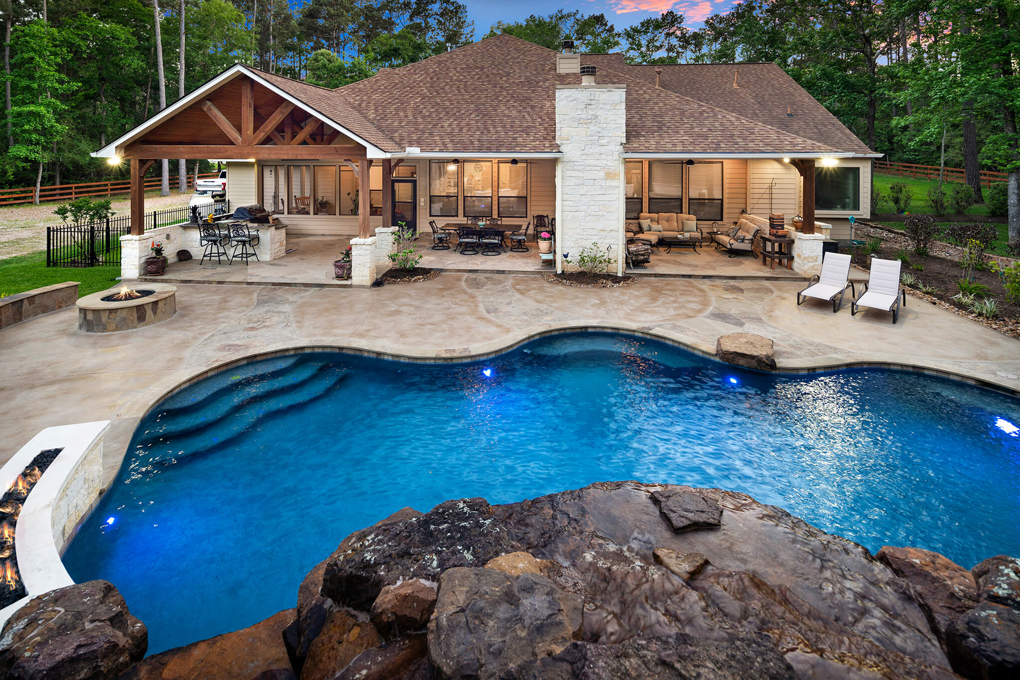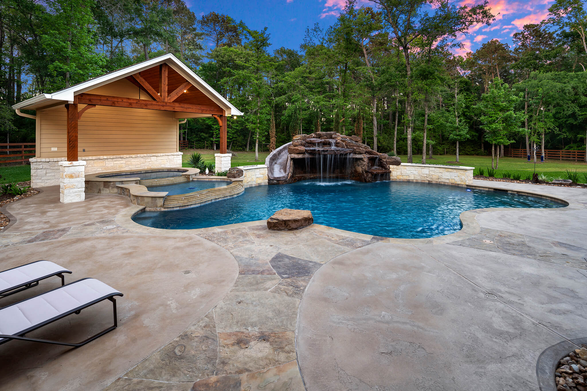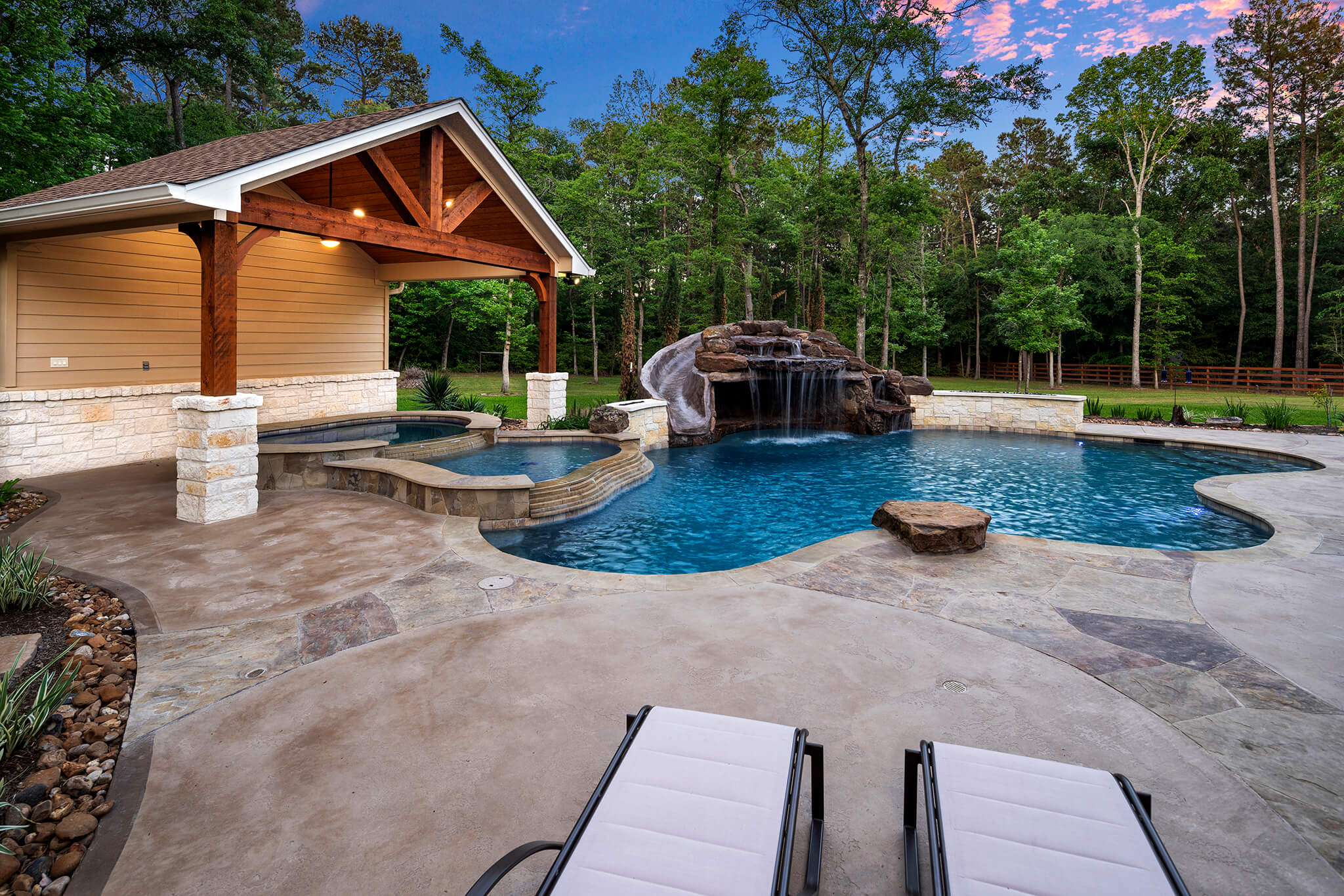 Freeform Pool, Slide, and Grotto in Lake Windcrest of Tomball, Texas