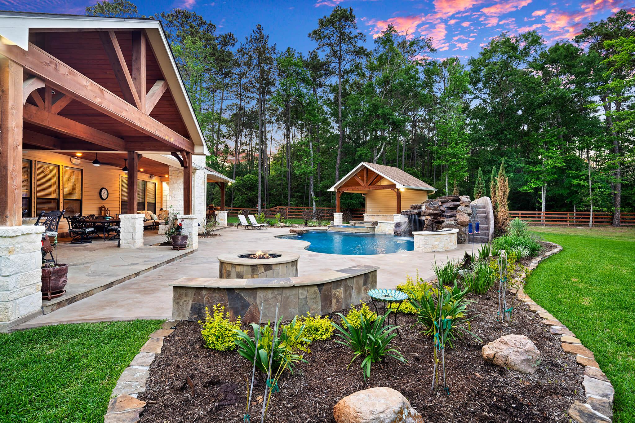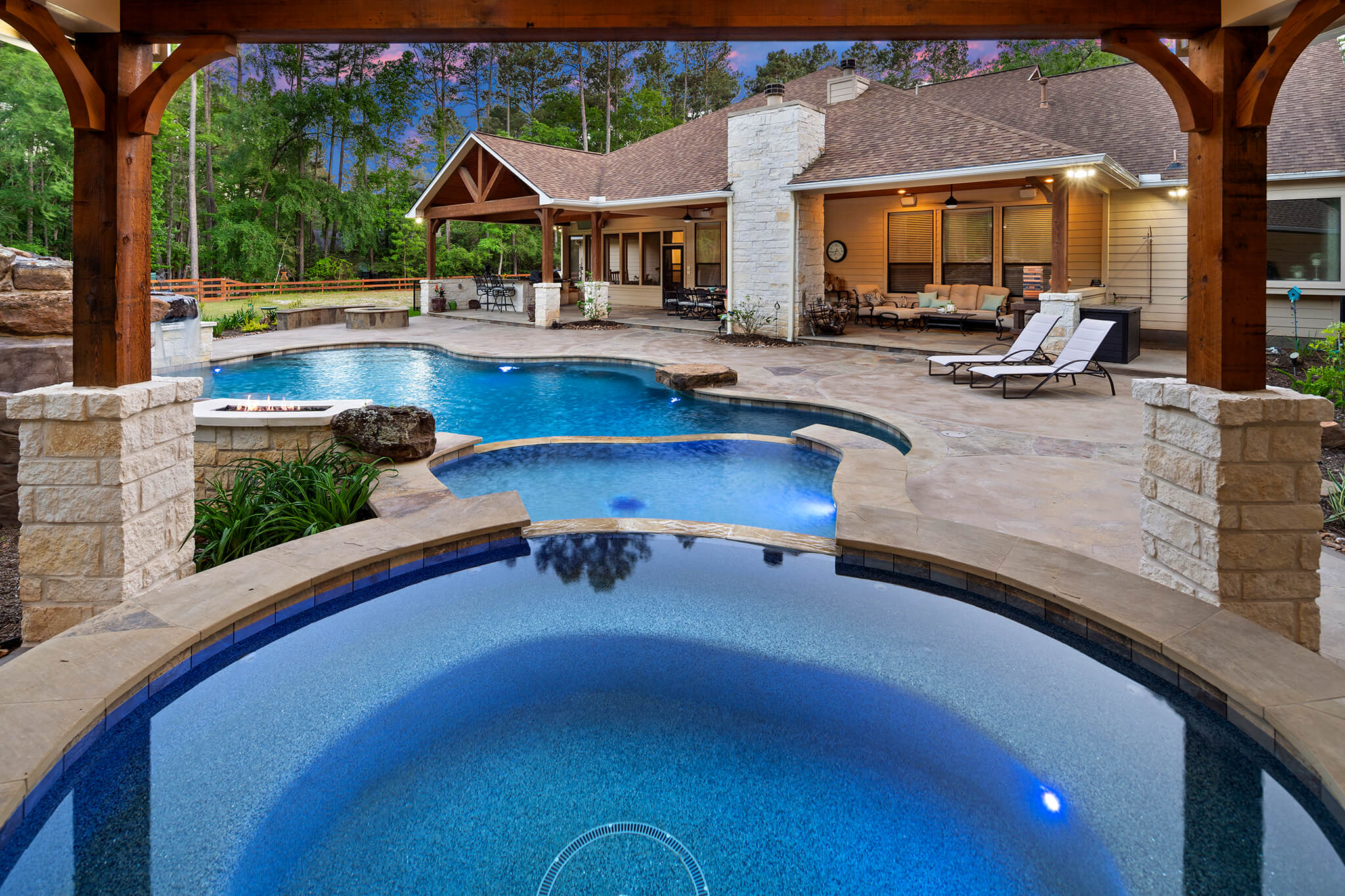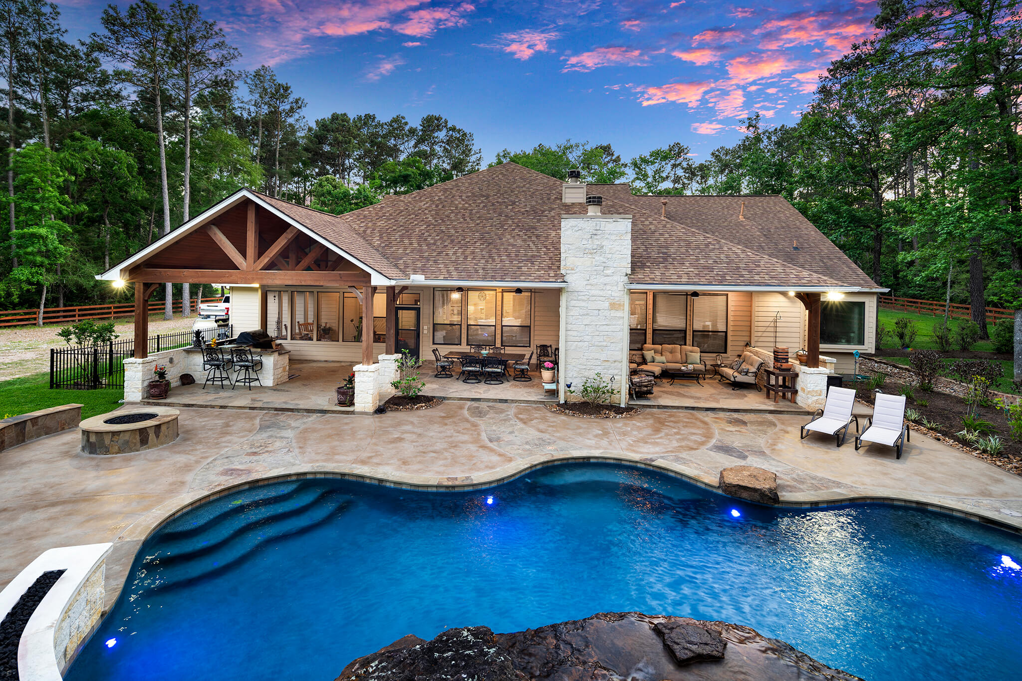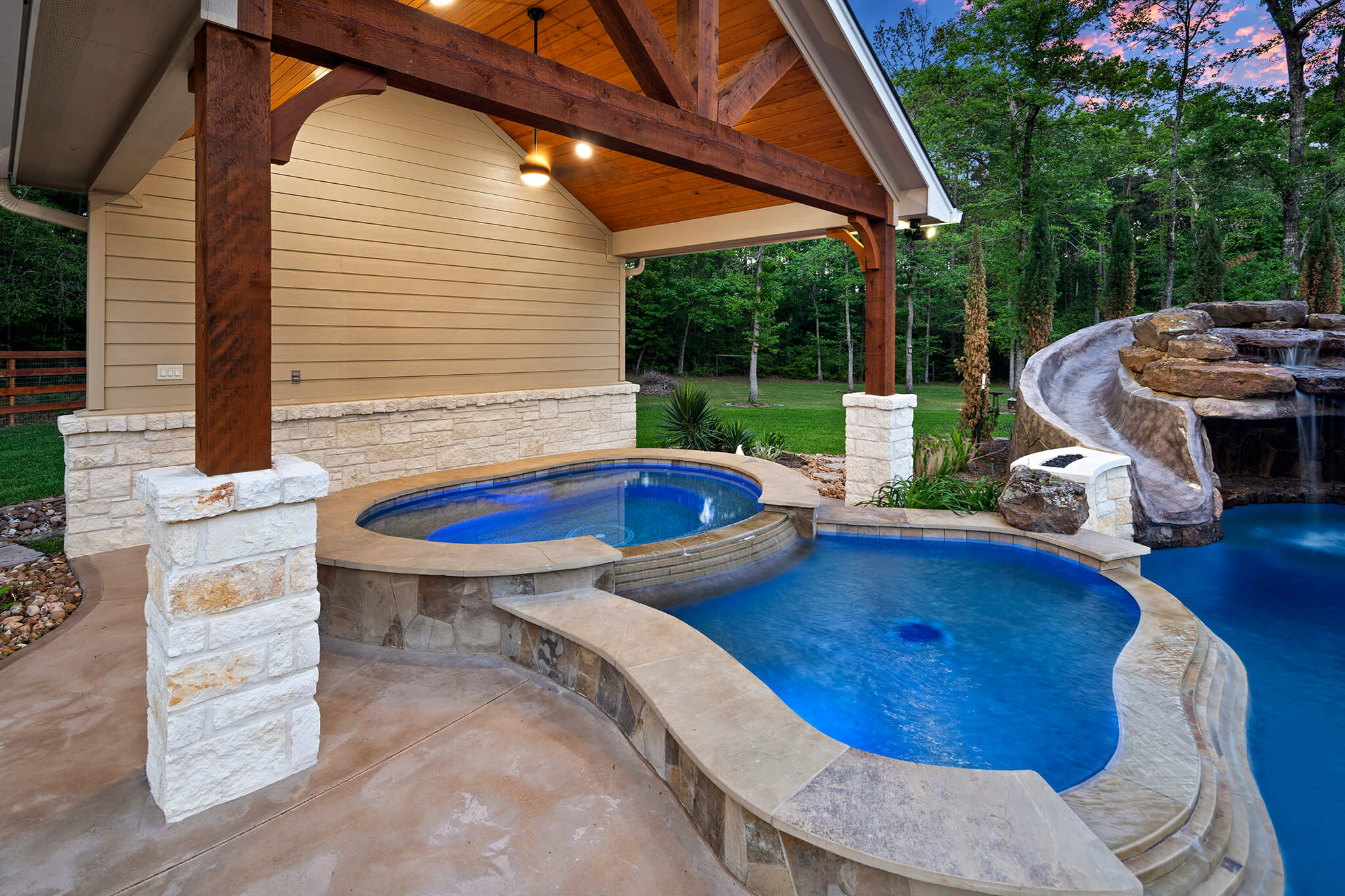 Freeform Pool, Slide, and Grotto in Lake Windcrest of Tomball, Texas