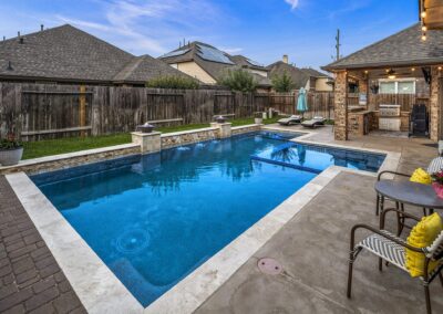 Geometric Pool and Granite Outdoor Kitchen in Cypress, Texas