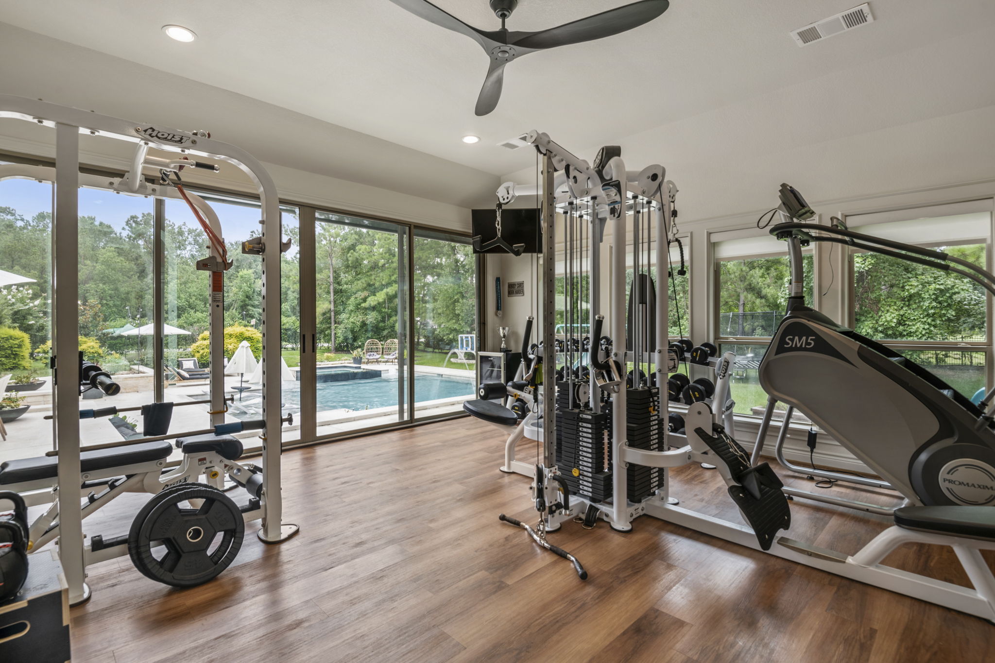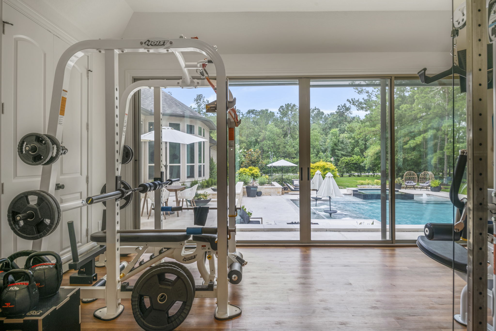 Geometric Pool, Gym Addition, and Pool Bath in Benders Landing Estates of Spring, Texas