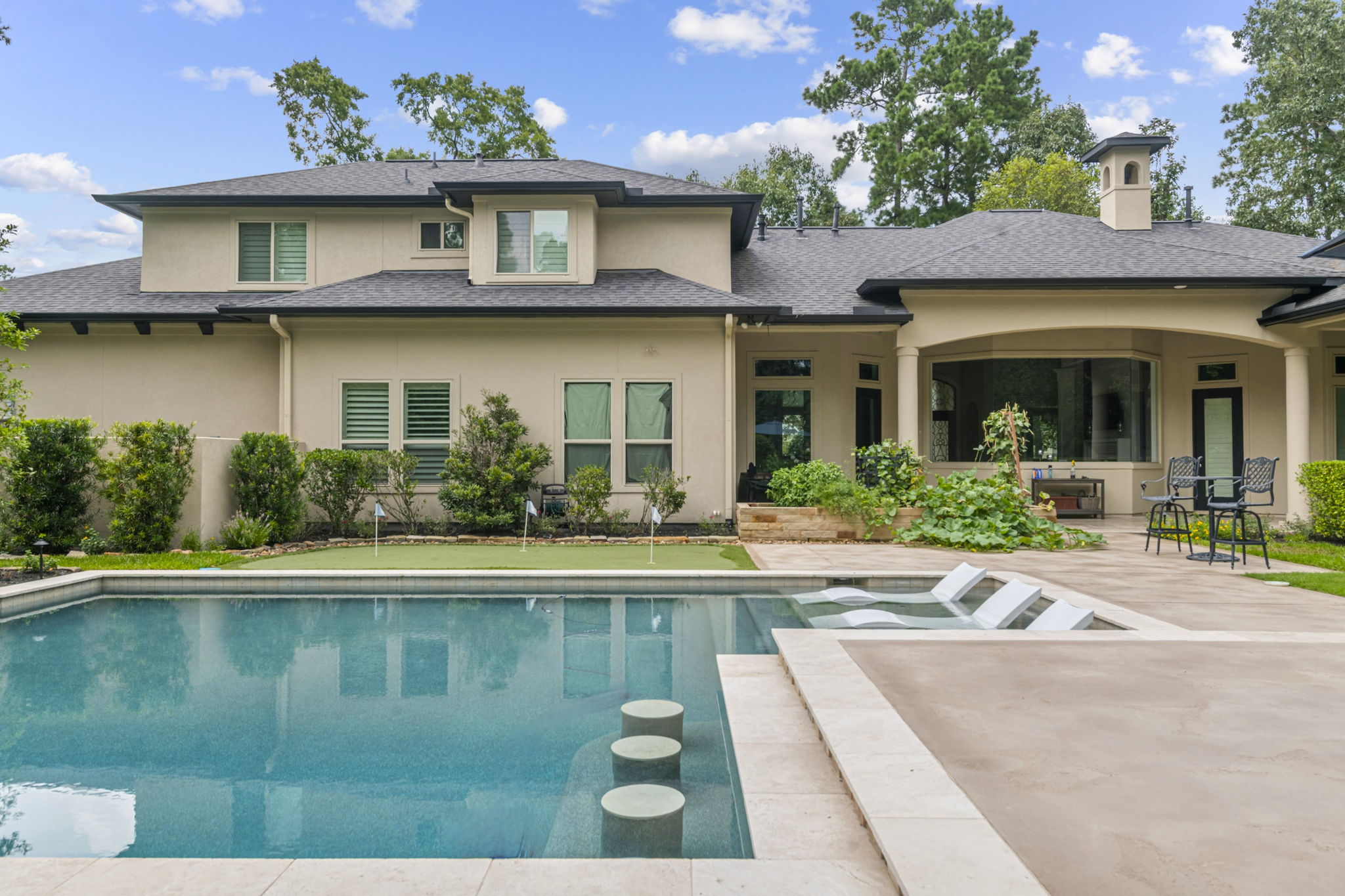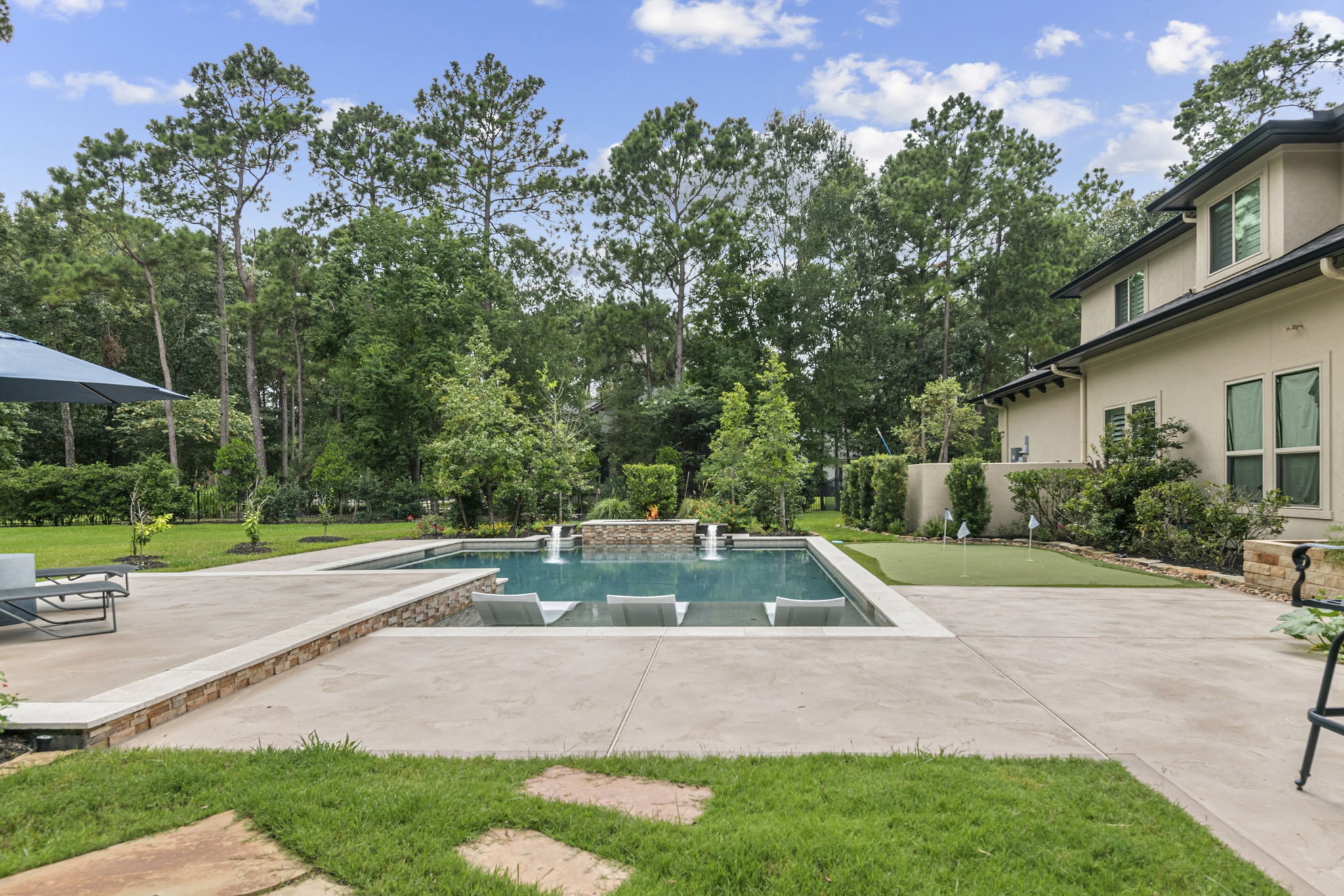 Geometric Pool with Mini Putting Green in Benders Landing Estates of Spring, Texas
