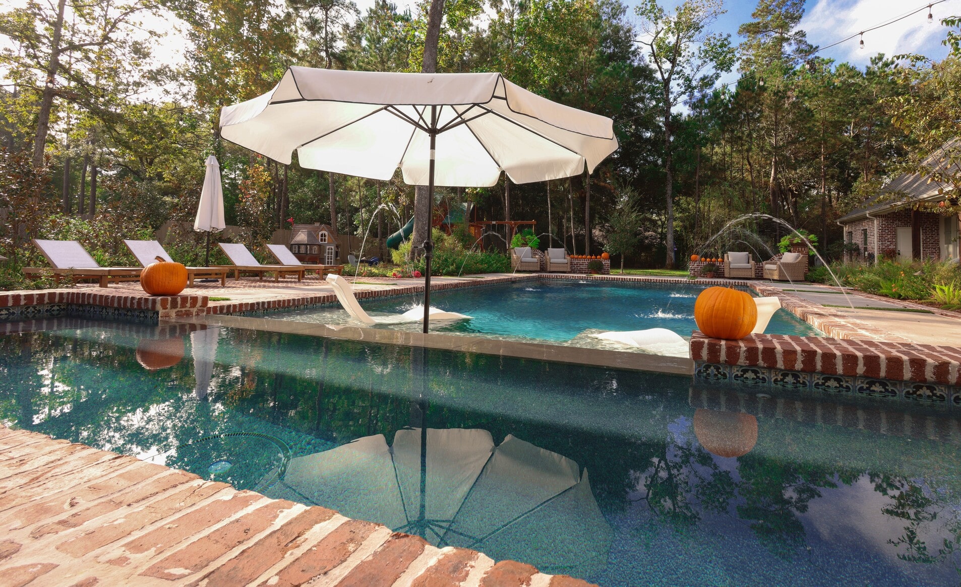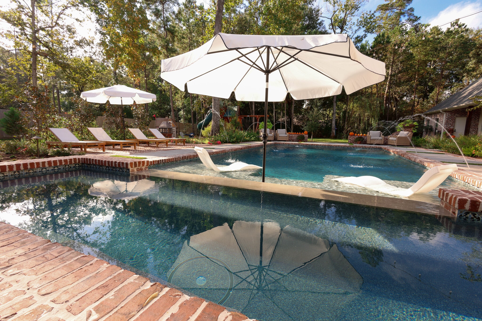 Geometric Pool with Sunshelf in Benders Landing Estates of Spring, Texas