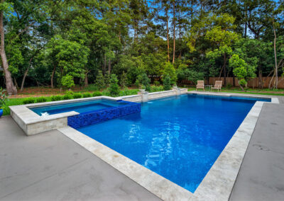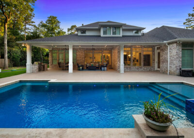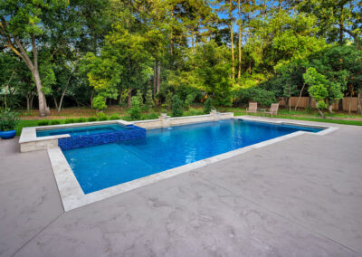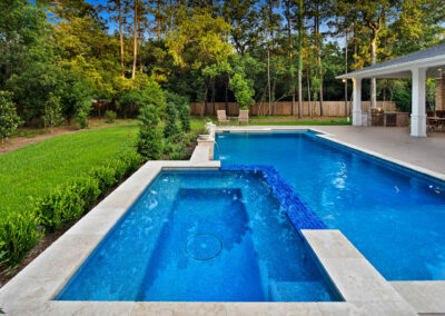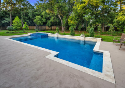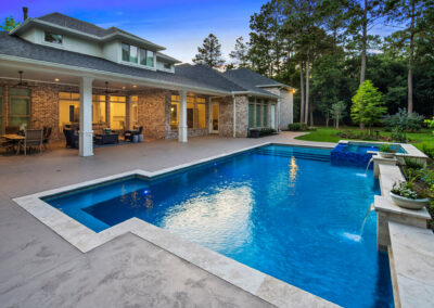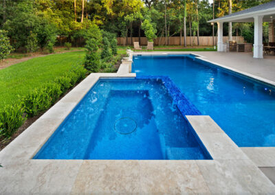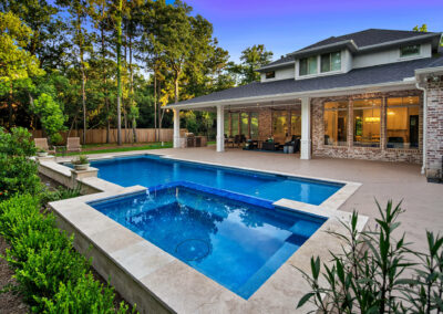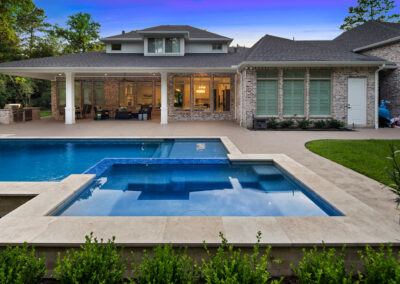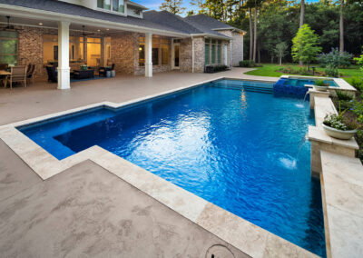 Geometric Travertine Paver Pool in Benders Landing Estates of Spring, Texas