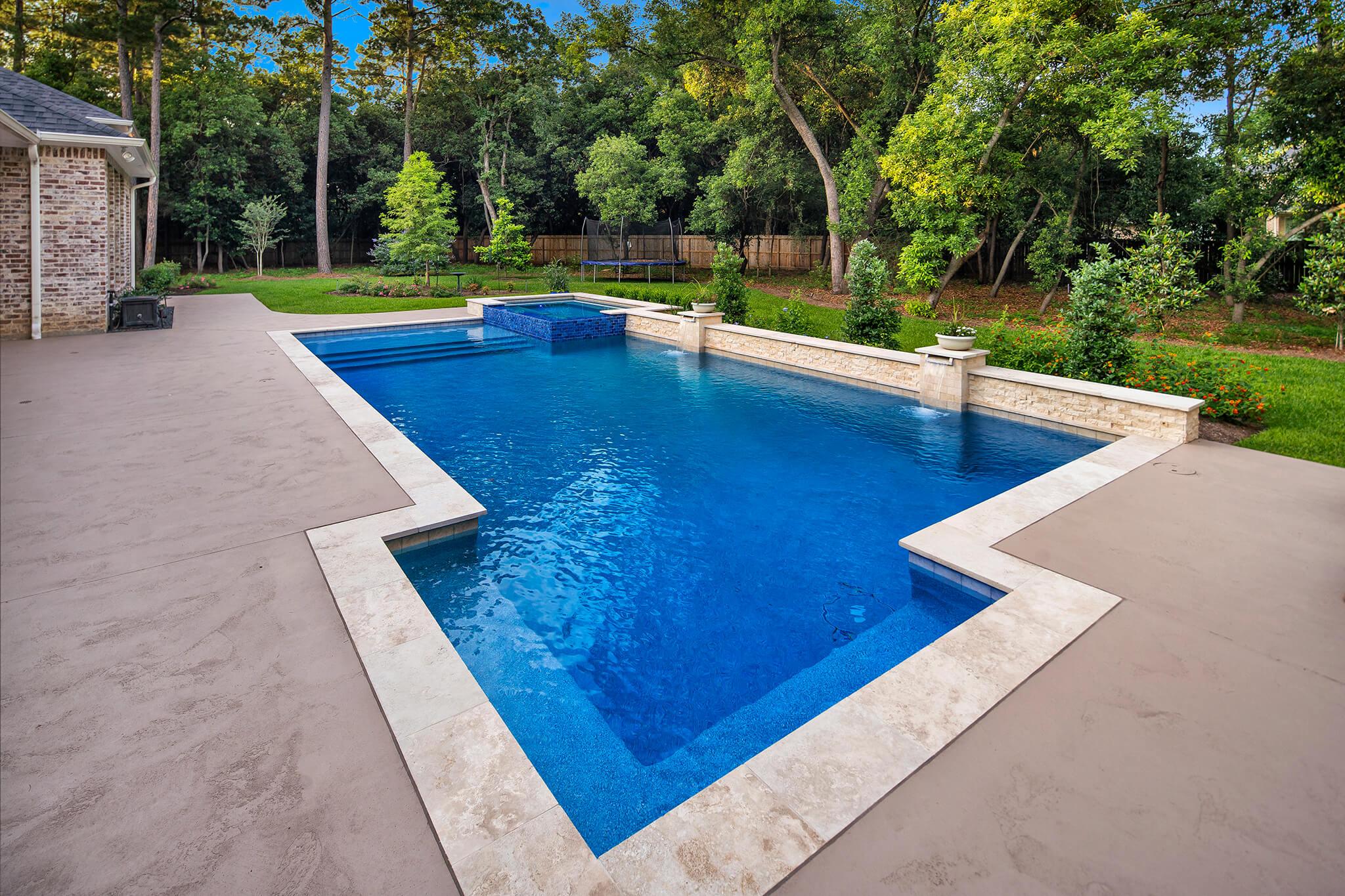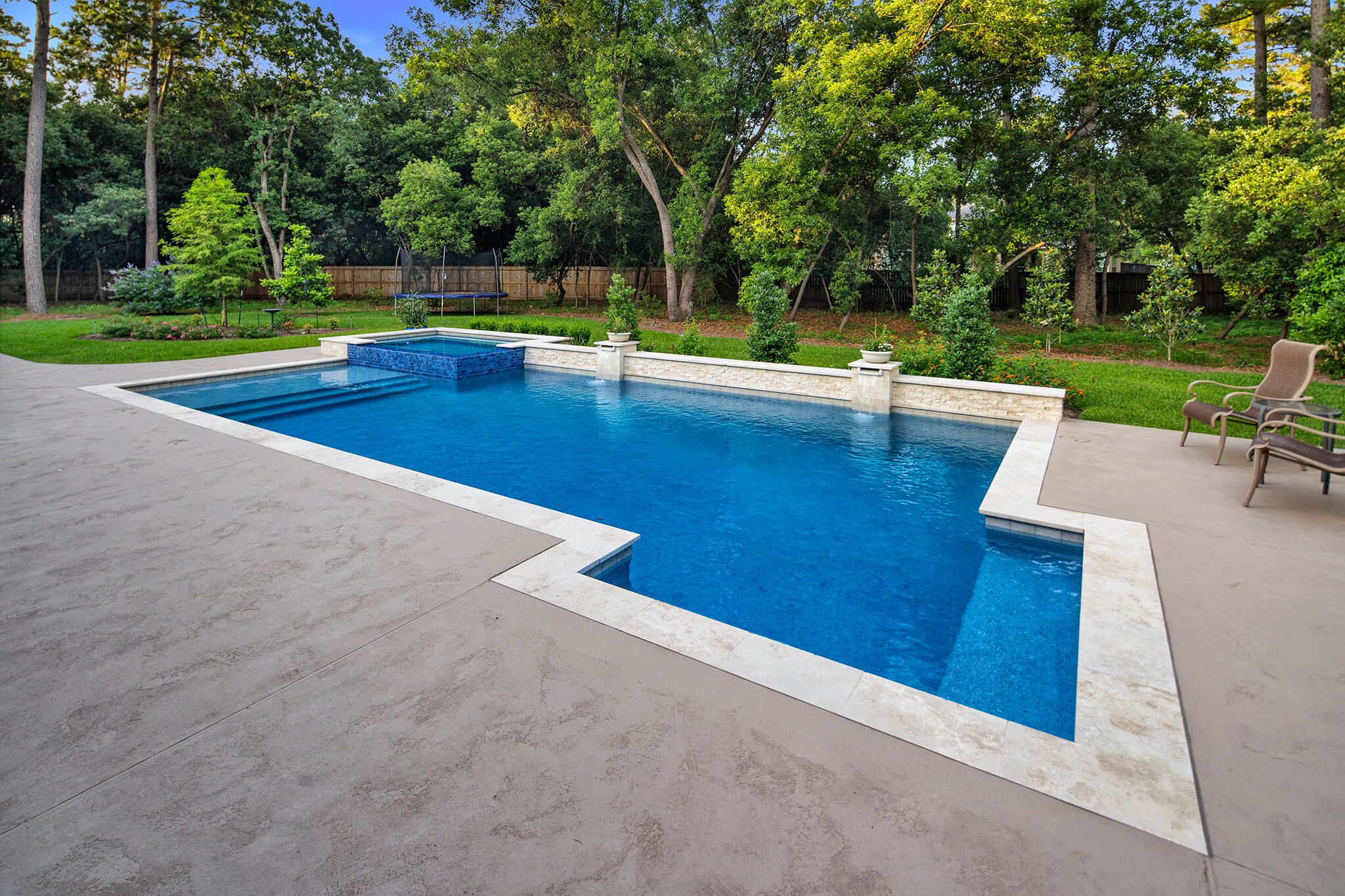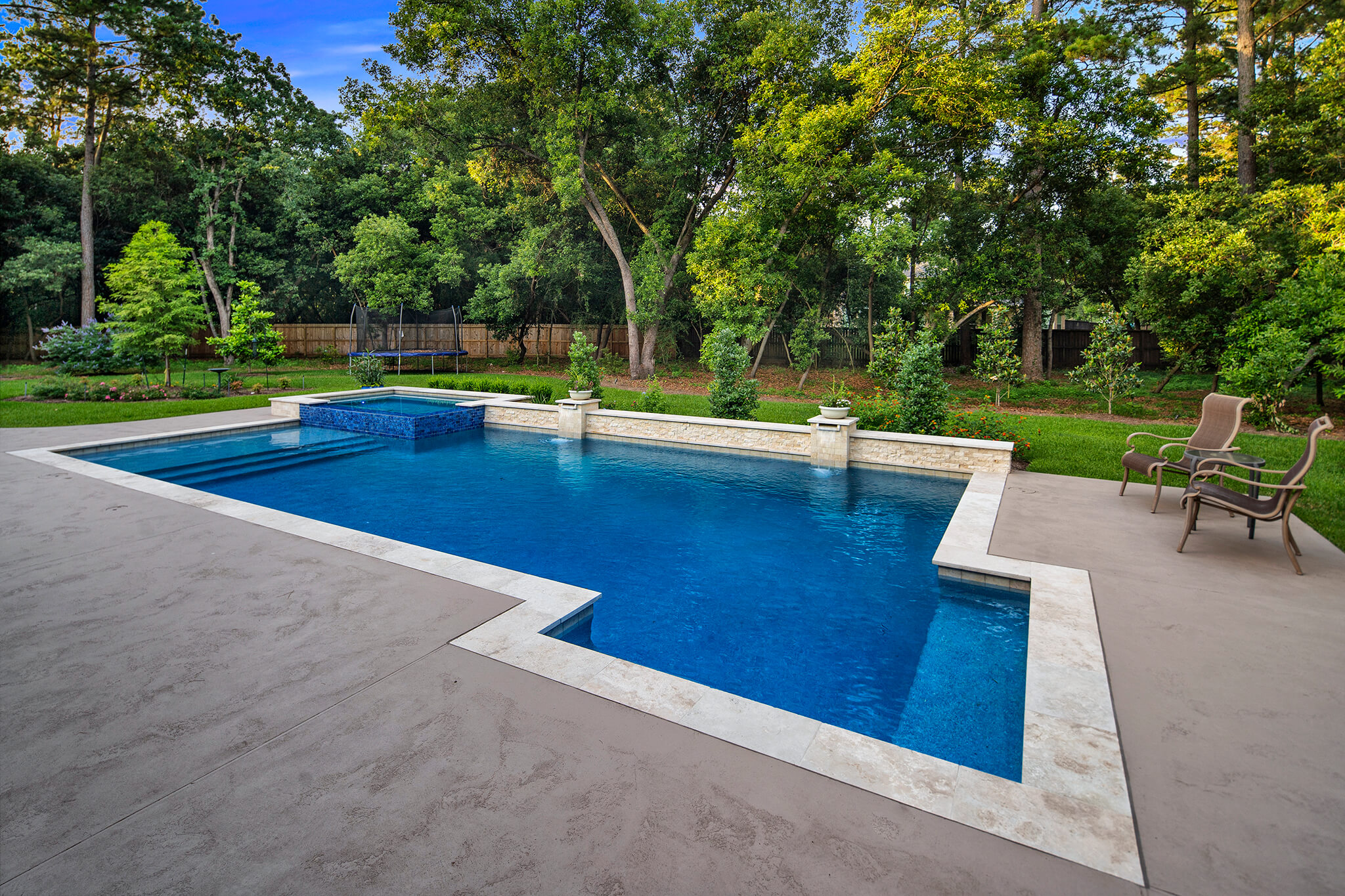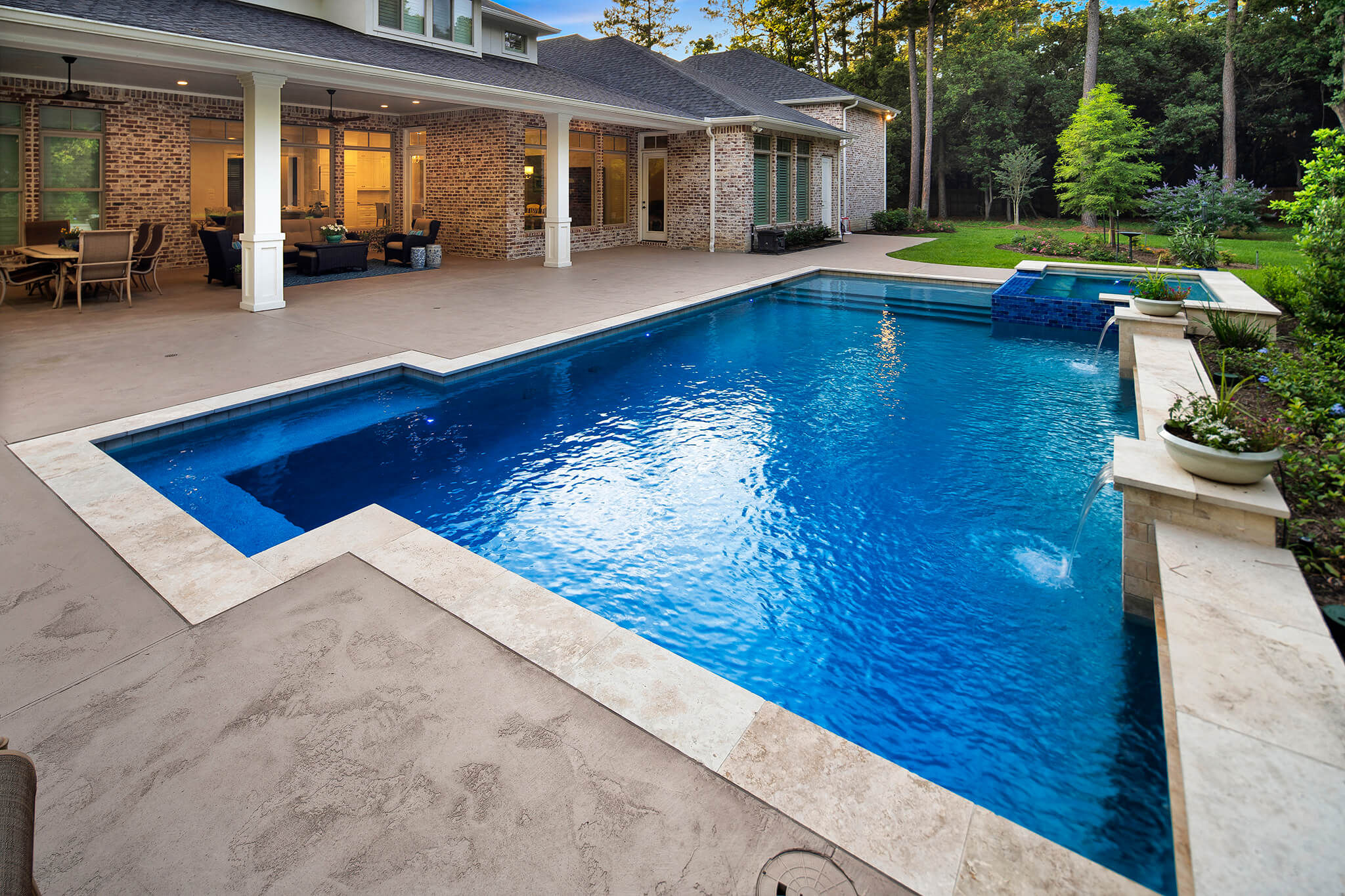 Geometric Travertine Paver Pool in Benders Landing Estates of Spring, Texas