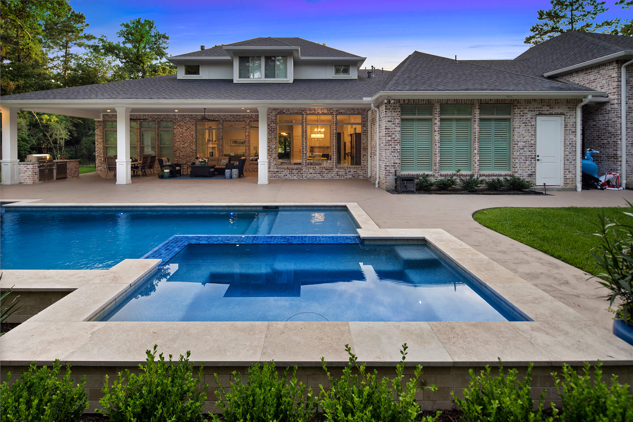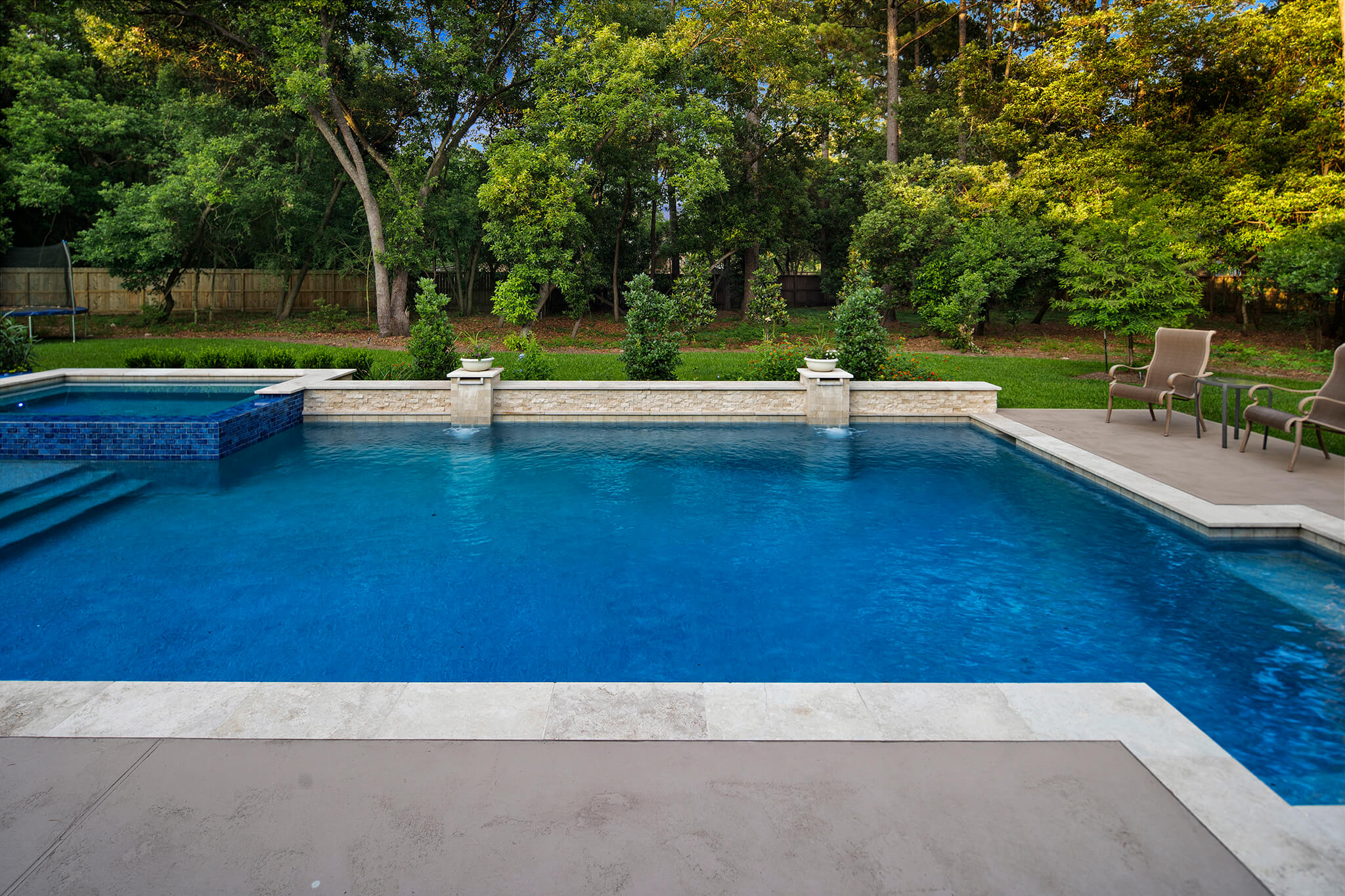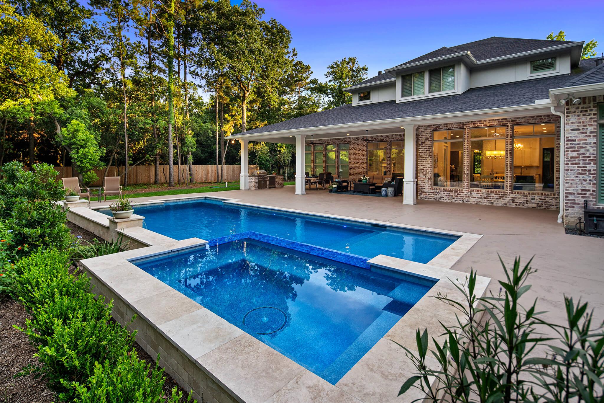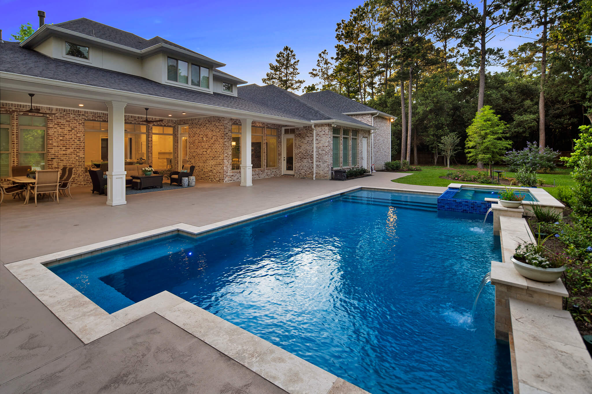 Geometric Travertine Paver Pool in Benders Landing Estates of Spring, Texas