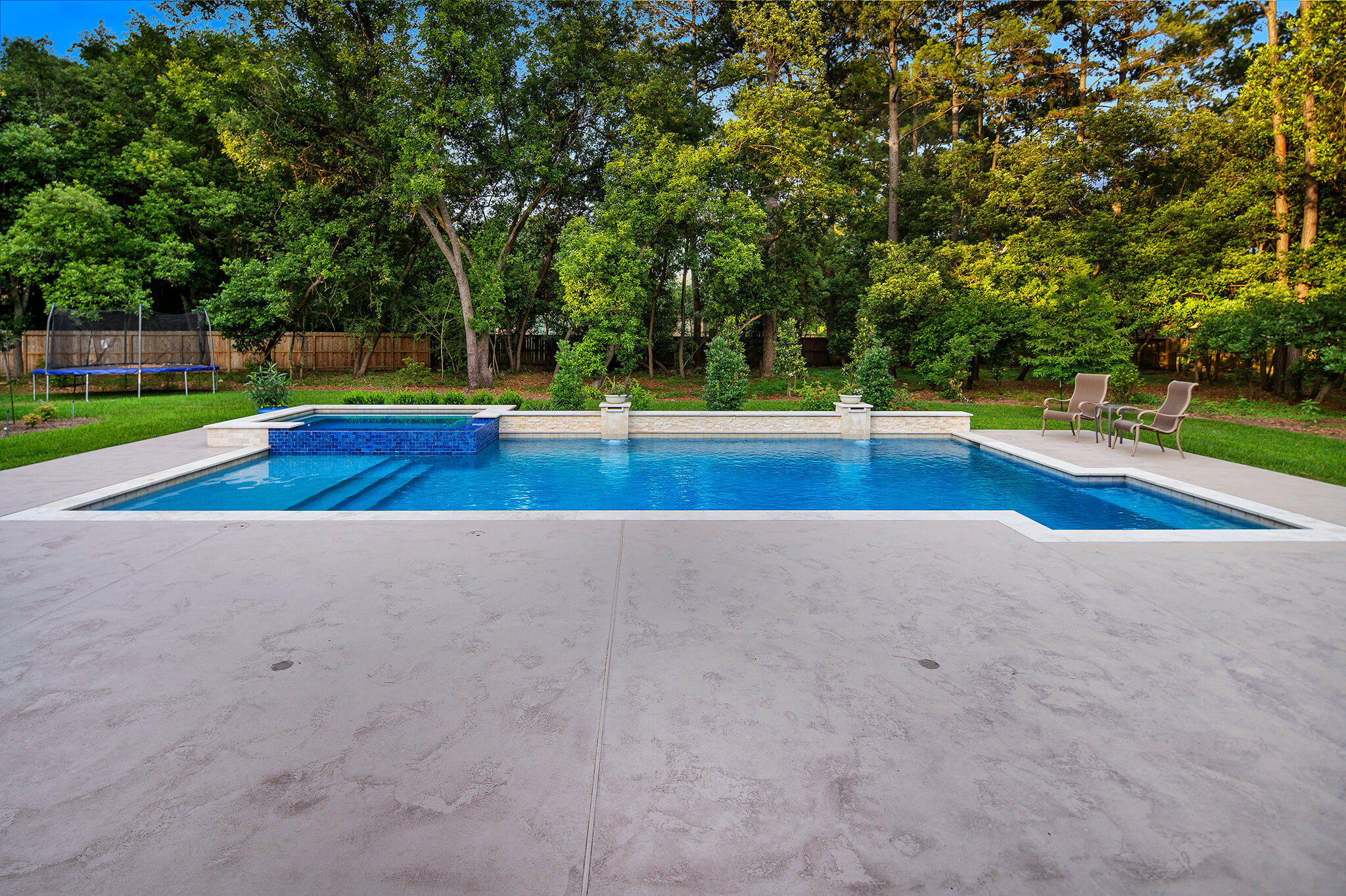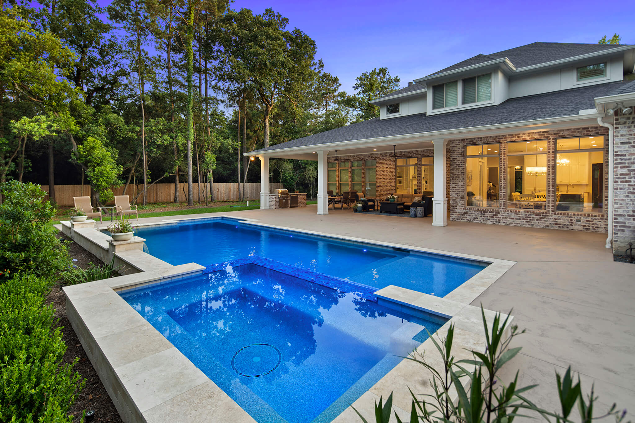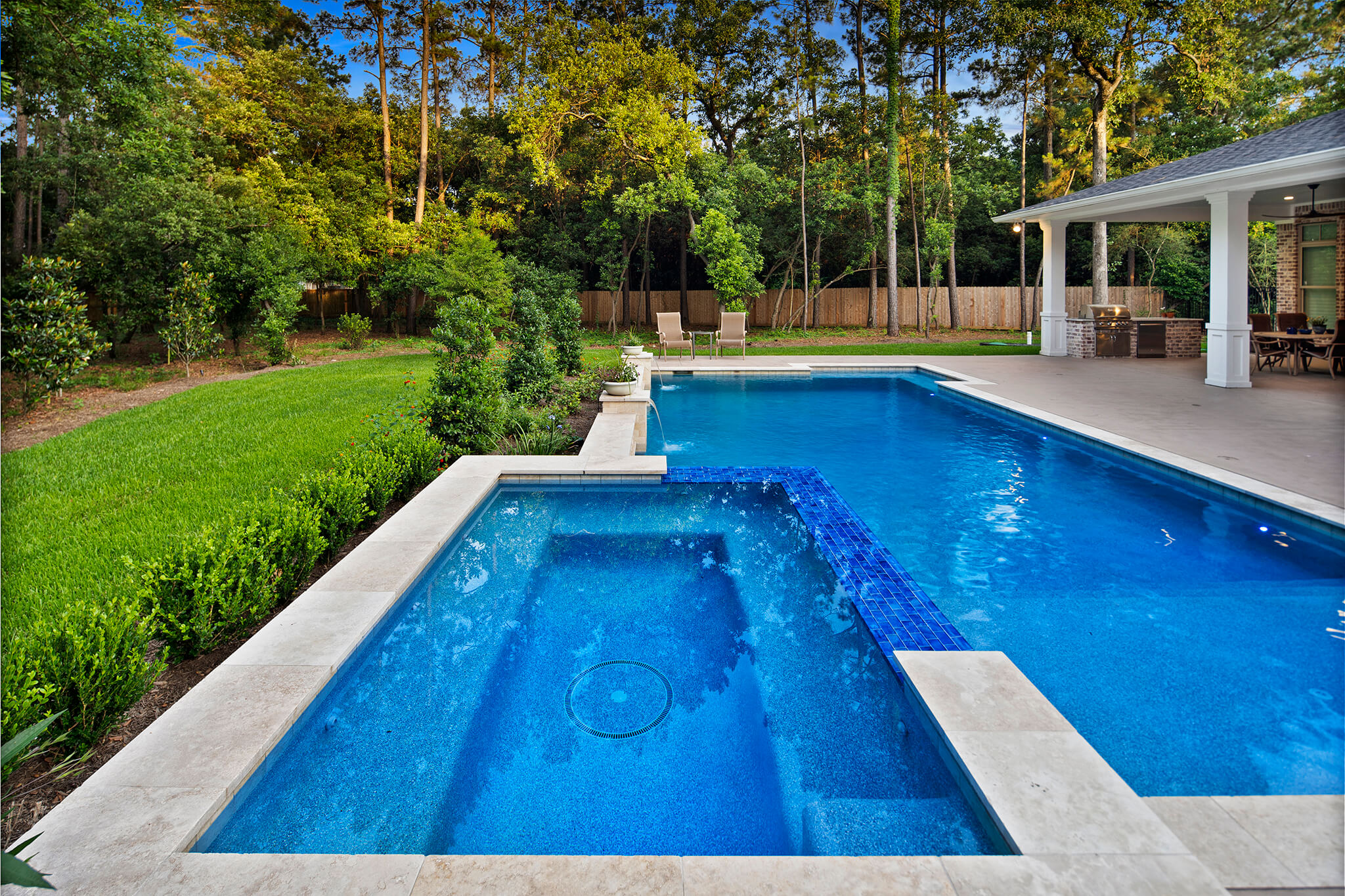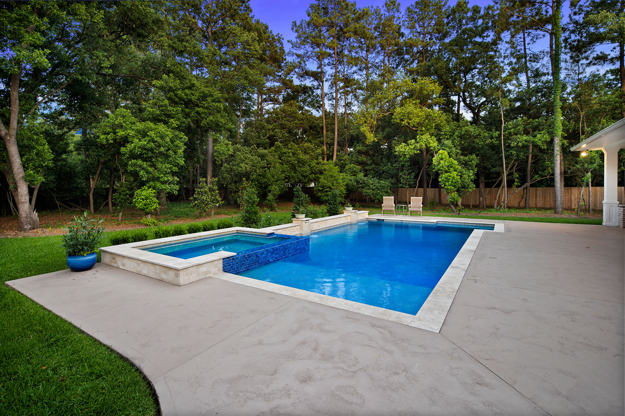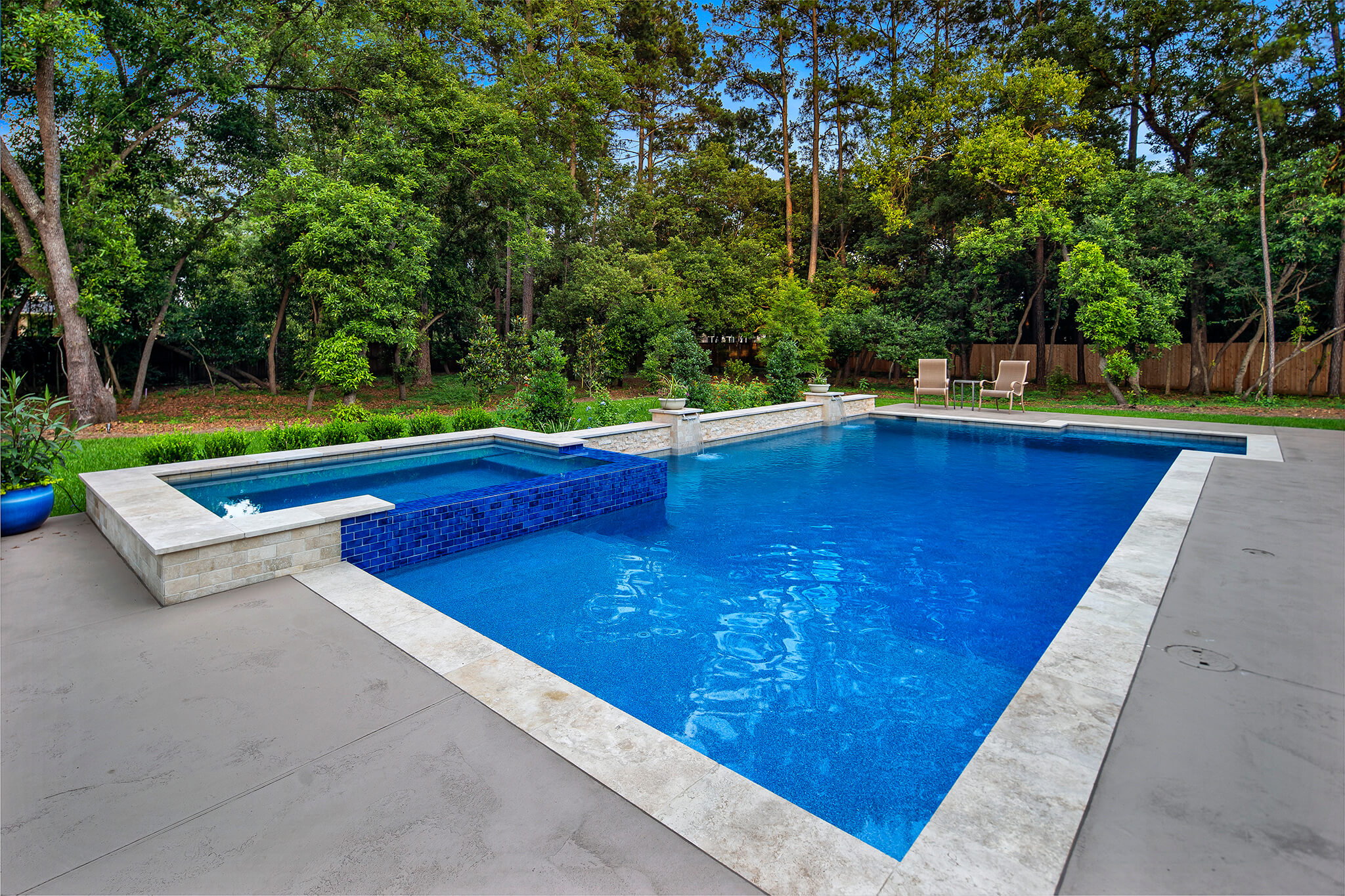 Geometric Travertine Paver Pool in Benders Landing Estates of Spring, Texas
