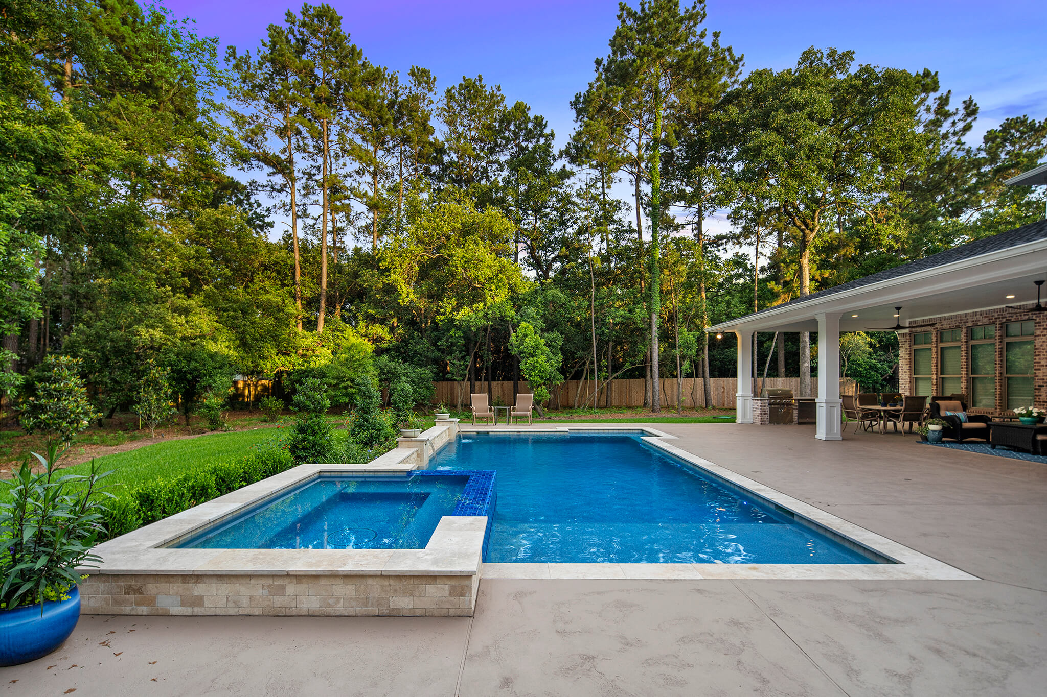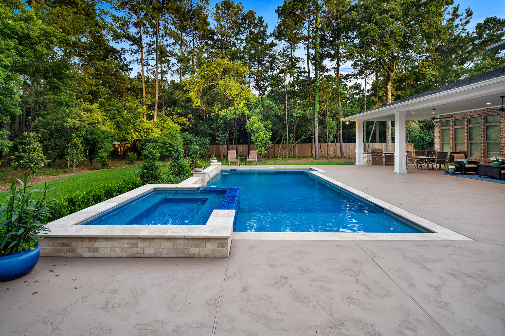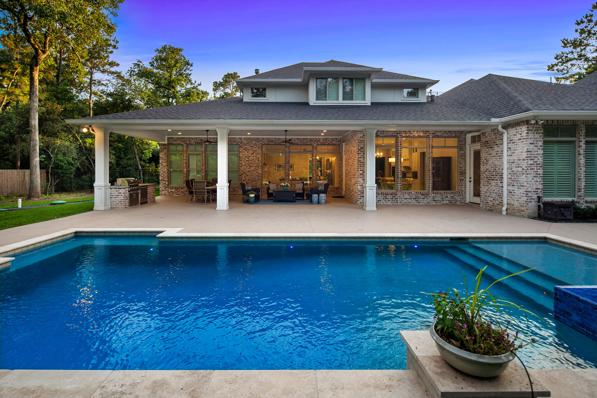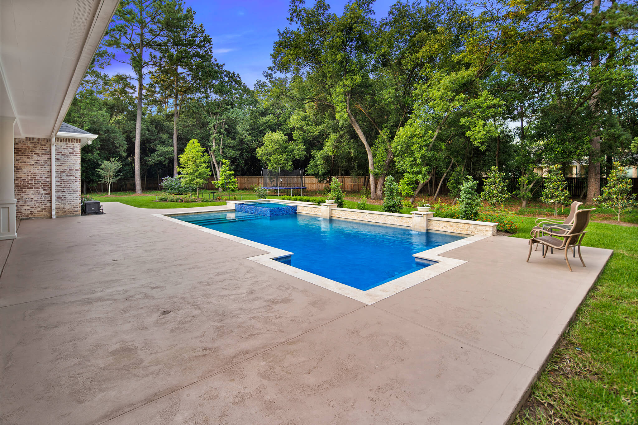 Geometric Travertine Paver Pool in Benders Landing Estates of Spring, Texas