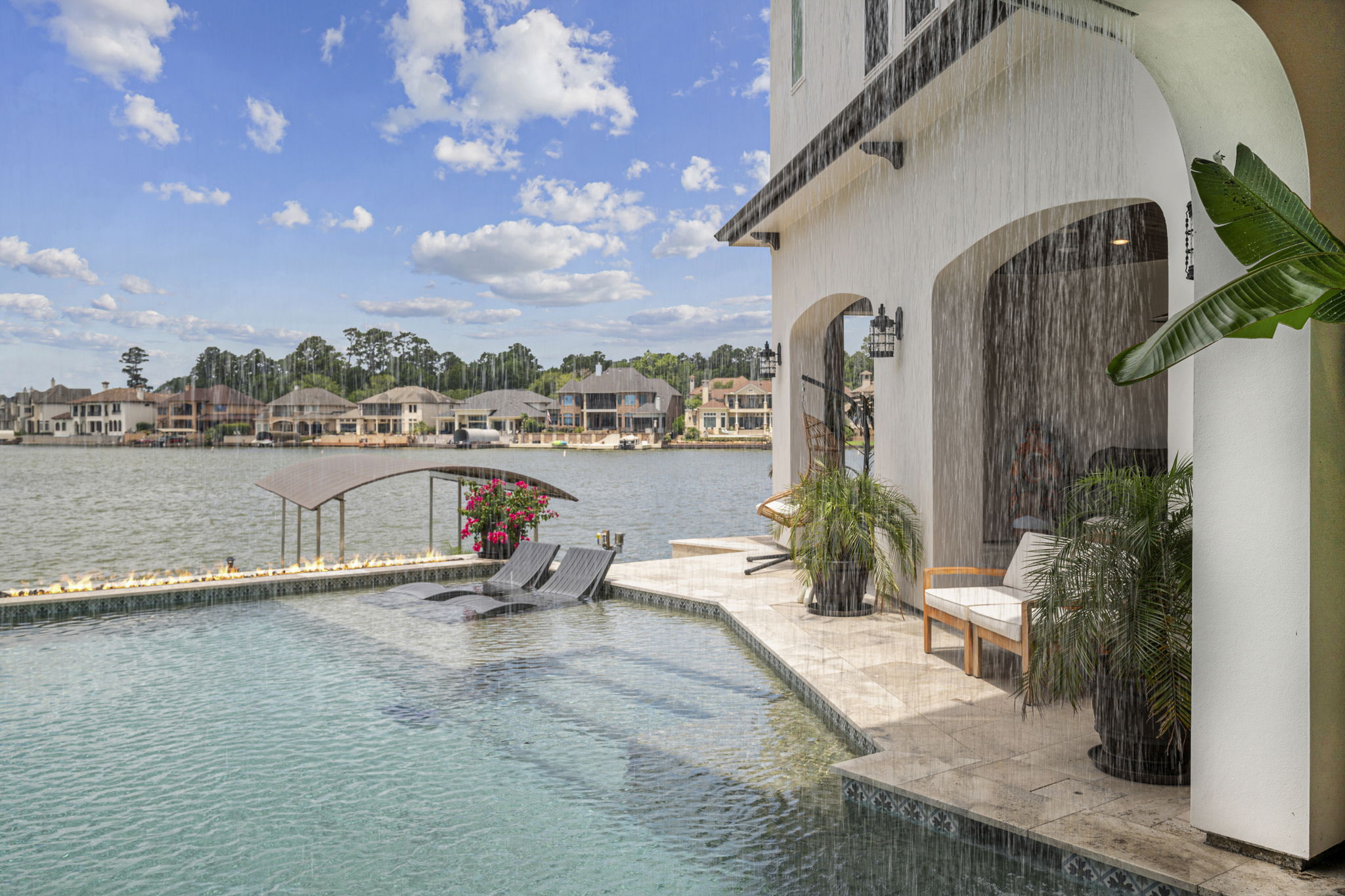 Mediterranean Style New Home and Geometric Pool in Bentwater of Lake Conroe, Texas
