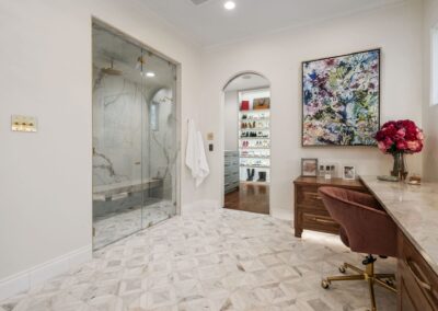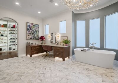 - Custom Vanities: Separate his-and-hers setups with granite counters, a makeup area, and lots of storage