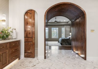 - Grand Entrance: Beautiful arched alder wood doors that slide into the wall