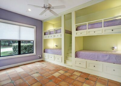 Six built-in bunks with drawers, lights, and a ladder in the middle