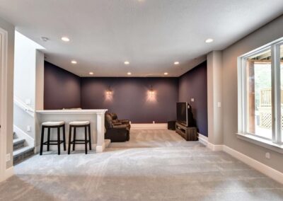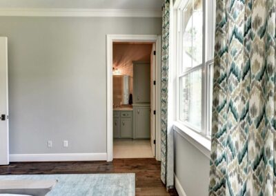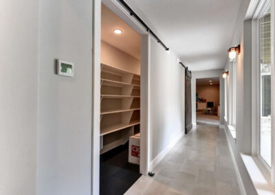 Stone walls and arched openings with custom wood trim throughout